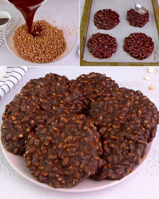 Biscotti senza cottura: la ricetta veloce per dolci golosi! INGREDIENTI : 160 ml (2/3 di tazza) di latte 400 g (2 tazze) di zucchero 115 g (8 cucchiai) di burro 115 g di cioccolato fondente 40 g (3 tazze) di riso soffiato 30 g (1/4 di tazza) di cacao in polvere Continua nella pagina successiva