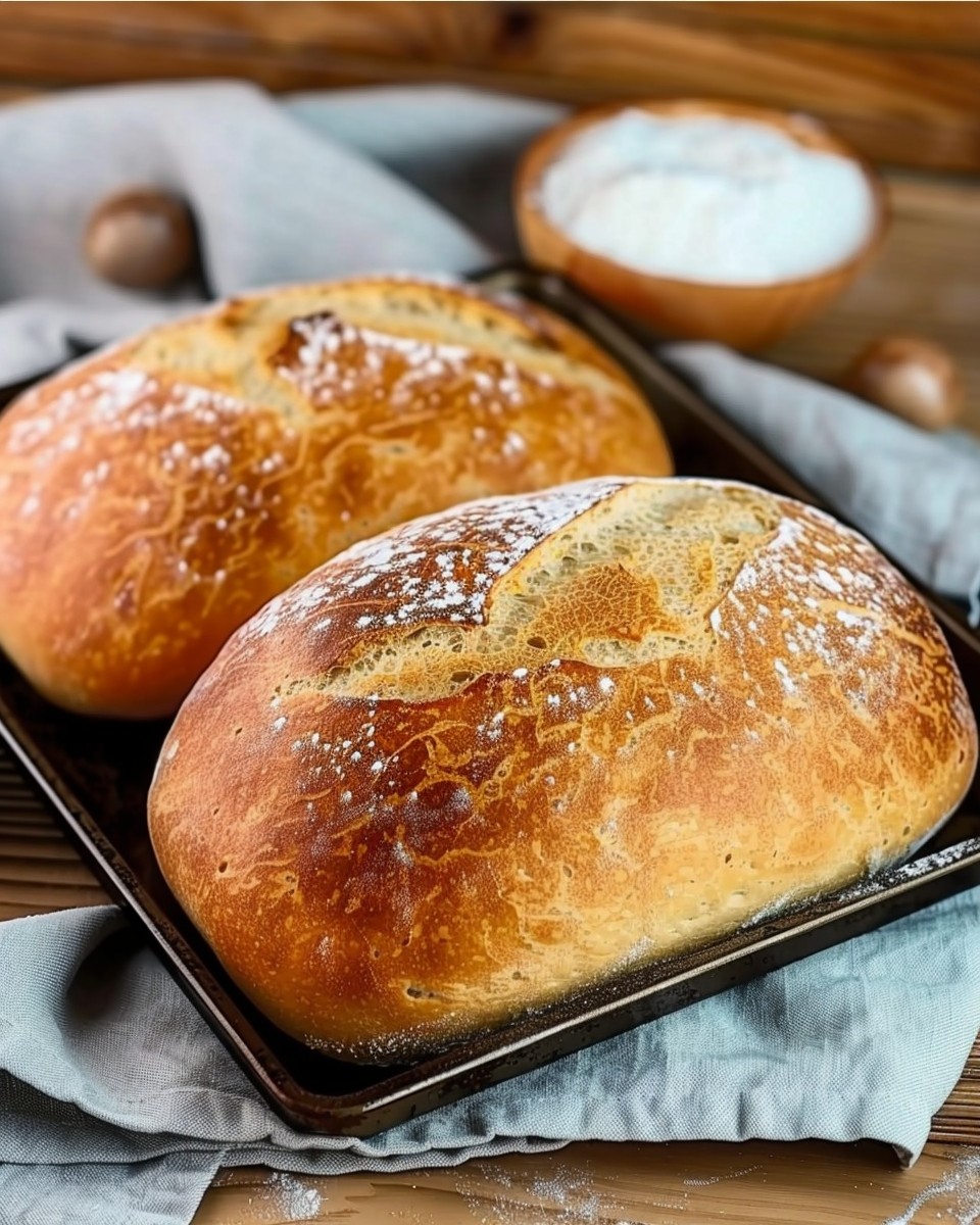 Pane in 5 minuti. Se solo avessi conosciuto questa ricetta 20 anni fa!Ingredienti:– Farina: 800 g– Sale: 2 cucchiaini– Zucchero: 2 cucchiai– Lievito secco: 10 g– Acqua tiepida: 500 ml– Olio d’oliva: 30 mlPreparazione: