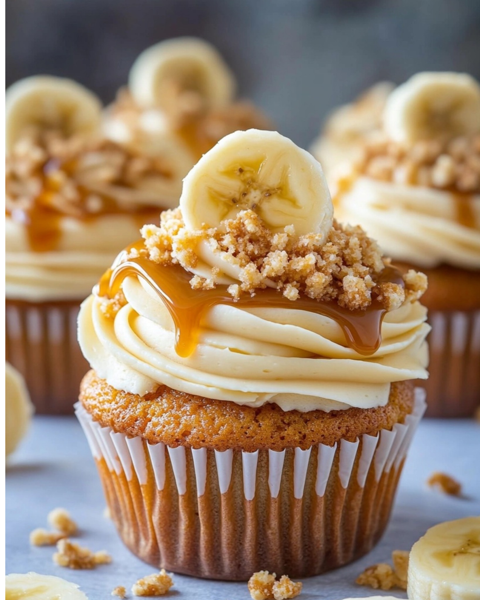 Cupcakes al caramello e banana con glassa al formaggio cremoso al caramello