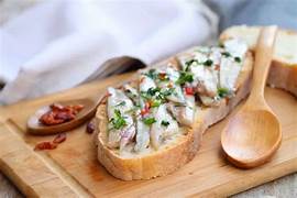 Il crostino con alici marinate è un antipasto che unisce gusto e fantasia in cucina, perché partendo da ingredienti semplici si può creare un piatto gourmet buono ed elegante. Le alici grazie alla marinatura acquistano un sapore complesso, infatti arancia e limone conferiscono ai pesci un sapore agrumato che viene smorzato dal sapore pungente della cipolla e dell’aglio, mentre il finocchietto conferisce un tocco erbaceo che equilibra il tutto. Ma non finisce qui: a rendere il crostino ancora più speciale è la presenza della burrata che col suo cuore morbido è capace di bilanciare, con delicatezza, il sapore complesso delle alici marinate. Il tocco finale è dato dalla marinatura alla menta che dona freschezza e profondità al piatto. Il crostino con alici marinate è un antipasto per tutte le occasioni, che sia per un pasto informale, per un buffet o per un brunch riuscirà sempre a stupire tutti.