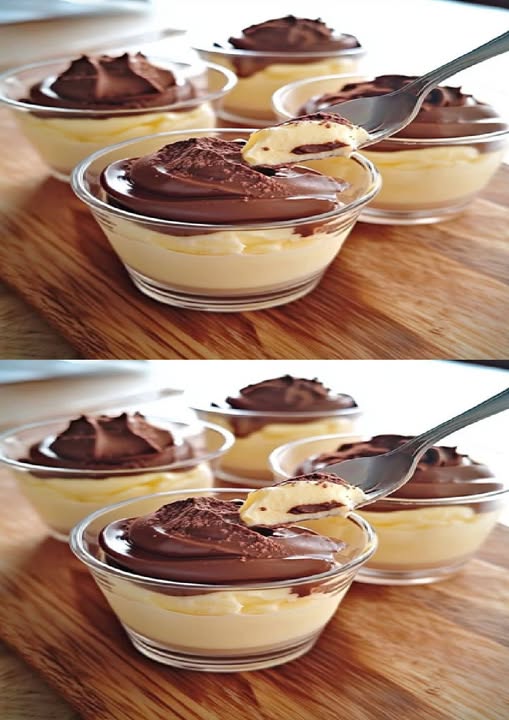 Decadenti tazze bicolore di crema alla vaniglia e cioccolato