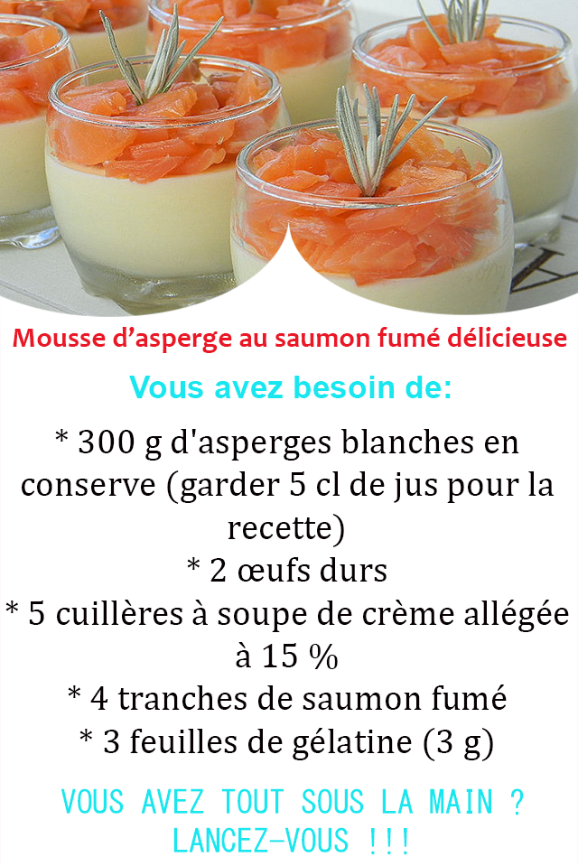 mousse di asparagi con delizioso salmone affumicato May 29, 2024May 29, 2024 by admin Tempo di preparazione: 20 minuti Tempo di riposo: 3 ore Passaggi di preparazione: La suite en page suivante Prossimo→