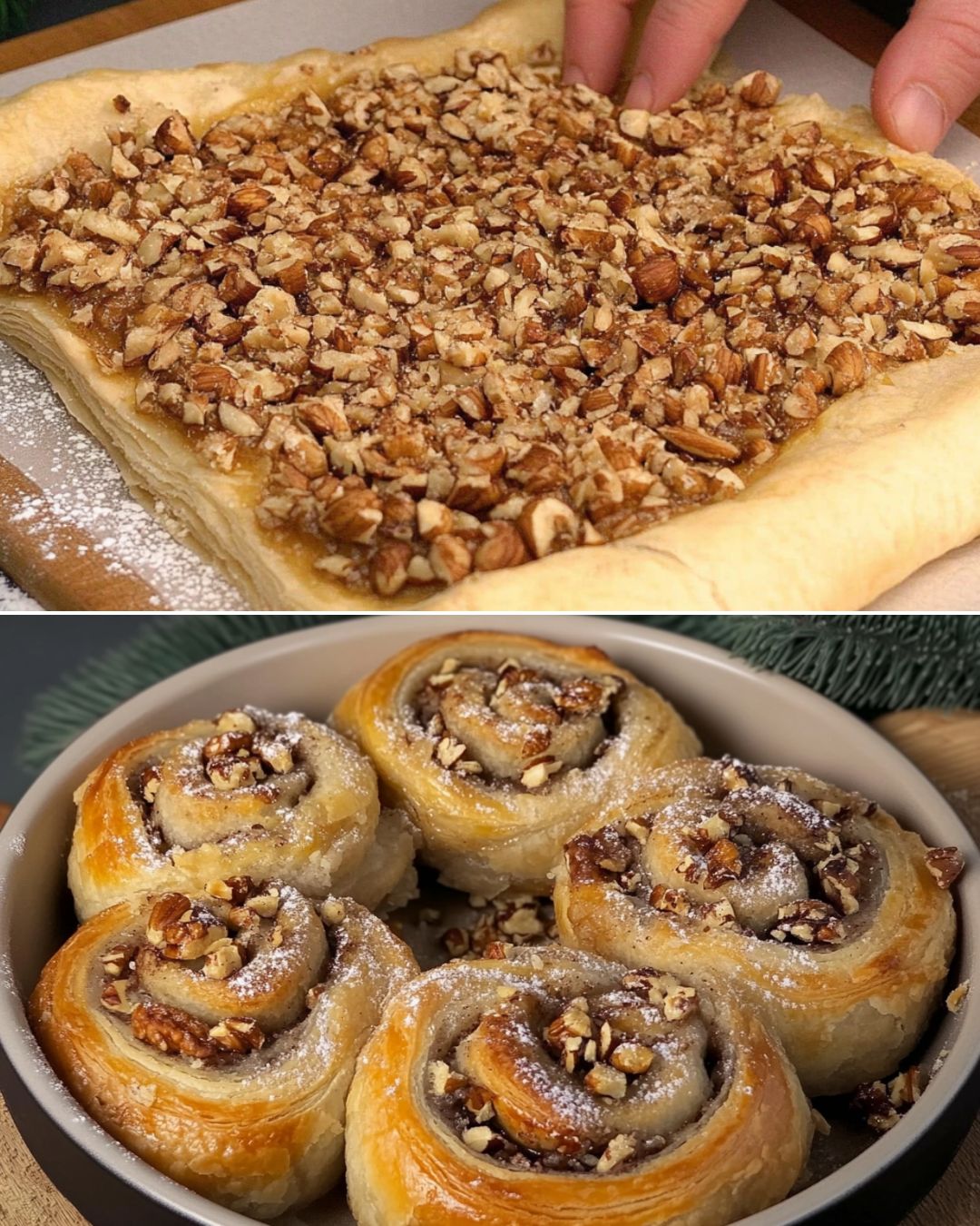 Biscotti delle feste eleganti e raffinati, perfetti per accogliere gli ospiti durante il periodo natalizio. La combinazione della croccante pasta sfoglia con il ripieno aromatico di noci e cannella creerà un’atmosfera magica sulla vostra tavola. 🎄