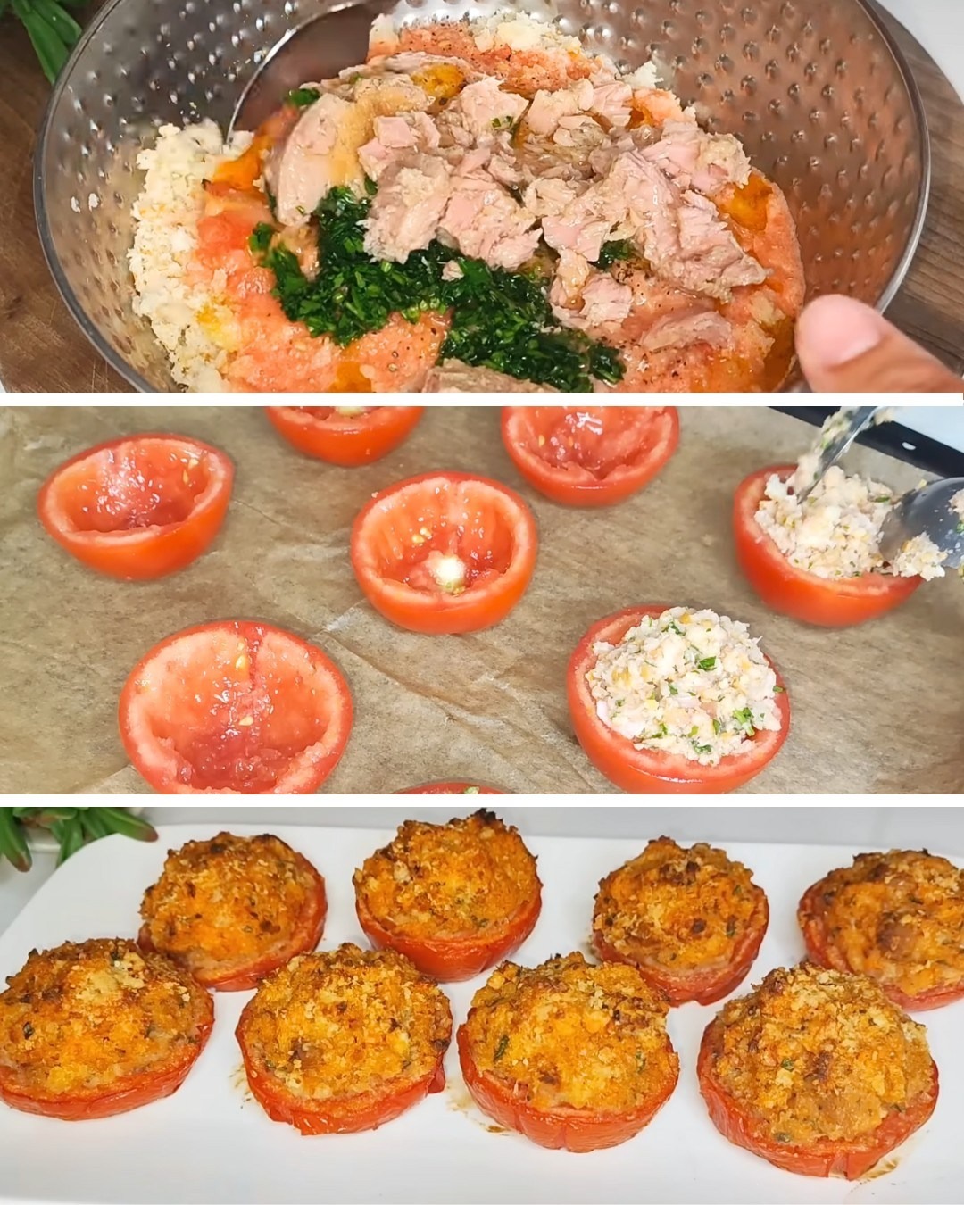 Ecco una ricetta per preparare dei deliziosi pomodori ripieni di pane e tonno: