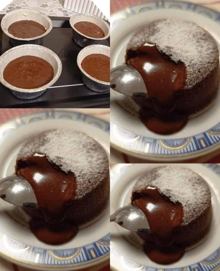Versa il composto (2/3 cucchiai di impasto) nei pirottini in alluminio imburrati e infarinati con cacao amaro. Cuoci in forno preriscaldato a 180°C per circa 10-12 minuti.