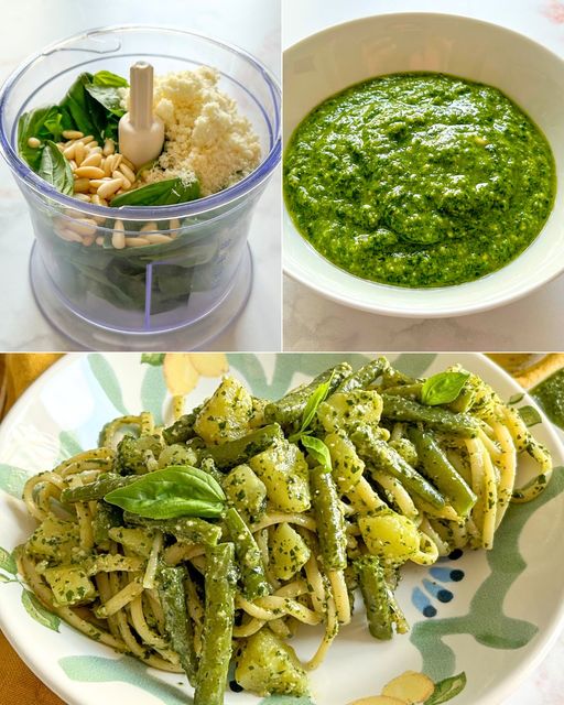 Le trenette al pesto sono un primo piatto tipico della cucina ligure, preparato con pesto alla genovese, fagiolini e patate lesse. Perfette per un pranzo della domenica in famiglia o per una cena estiva con amici, queste trenette, simili alle linguine, sono tradizionalmente condite con pesto di basilico.